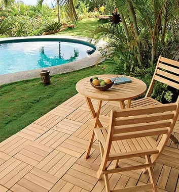 Brick bordered pool coping with deck tiles. Deck tiles around pool areas work