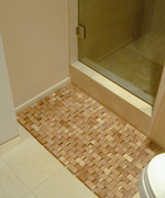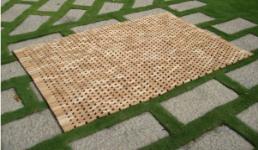 Teak bath mats use 3/4" thick Teak cubes which are sewn