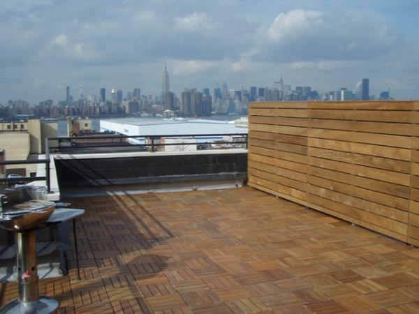 Ipe deck tiles used on Brooklyn NY Roof deck